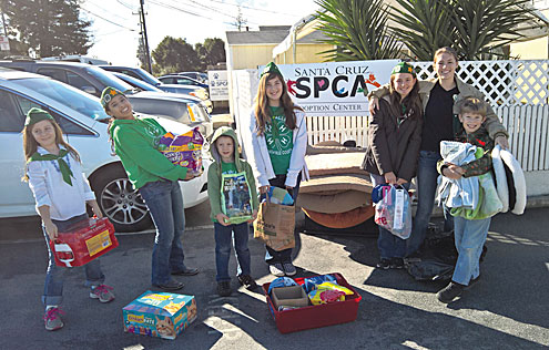 Recently, Scotts Valley 4-H donated cat and dog food, cat litter, toys, towels and rags, harnesses, collars, pet beds, and medication for the animals to the Santa Cruz SPCA. Brenna Ewing gave the present 4-Hers, Nadia, Tarynn, Bel, Rylee, Will, and Katelyn, a tour of the facility and let them meet some of the animals.
