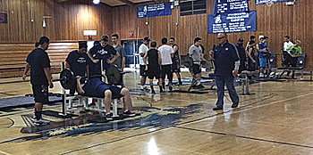 The weight lifting competition was really more about team building and acknowledging each athlete’s self-improvement. The competition is broken into two classes: Varsity and Junior Varsity. The gym was set up with five lifting stations and the players were introduced as they took their place at the strength appropriate station. “The crowd really gets into it when they see a player reaching deep to keep going,” commented Athletic Director Mark Dorfman.