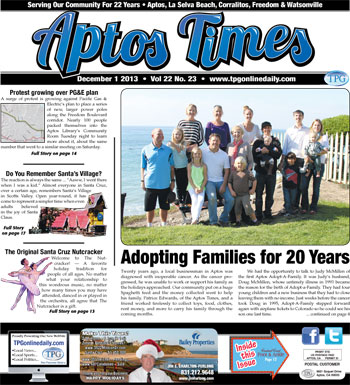 Adopting Families for 20 Years ● Aptos Crossing Agreement Reached ● Annual Winter Dance Concert – Presented by the Cabrillo College Dance Department • Christmas with the Chorale ● The Live Oak House By Kevin Newhouse ● Original Santa Cruz Nutcracker ● Protest growing over PG&E plan for more power poles By Jon Chown ● Do You Remember Santa’s Village? by W. Wilde ● Partnering in Community by Edita McQuary ● Aptos Cinema Upgrades are Great! by Noel Smith ● Trent Smith and His Journey by Noel Smith ● Ten and 12-year-olds share Artist Of The Month by Joyce Oroz ● Central Coast Foot and Ankle ● Aptos Athletes Sign Letters of Intent – Leonardini, Belton Heading to Division I Universities by Michael Oppenheimer ● Aptos High School Scoreboard … and much more!