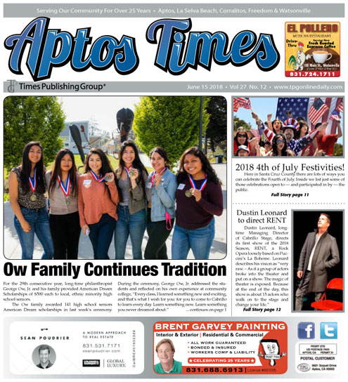 In the Garden 2018 • Latest Info From SCC Friends of Rail/Trail • ‘Libro Castro’ Benefit – Fundraiser Celebrates Launch of Updated Castro Adobe Book • Coughing That Won’t Quit? Think Pertussis (Whooping Cough) • Our Community Reads: Planning For 2019 • Voters Approve Proposition 69: Dedicated Revenues for Transportation • Conflict Resolution Center Hires New Director • SCC Amateur Radio Operators Communications Drill • Sixth Annual Pleasure Point Street Fair – Benefit for Live Oak Education Foundation • Annual Auction Raises $176K To Benefit American Red Cross • SCCB’s Fifth Consecutive Year in Top 200 • Harvey West Park Swimming Pool is Open • Cannery Row Launches Contest to Celebrate 60th Anniversary • First Time at Camp: Talking with Your Child, by Bob Ditter, L.C.S.W. • New Aptos High Girls Volleyball Coach • 2018 Aptos Little League All Stars • Railbank! … and much more!