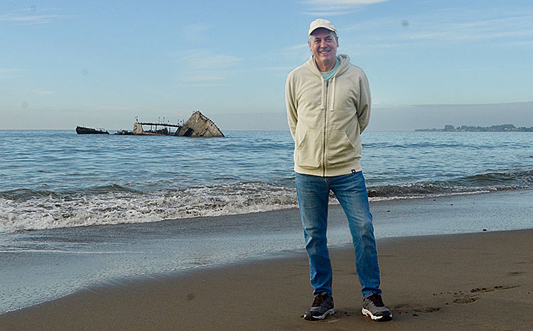 TOP PHOTO: Local writer Mark Marinovich poses for a photo in front of the SS Palo Alto, known as the Cement Ship. He will be giving a talk about the novel at the Aptos branch of the Santa Cruz Library on Jan. 23 from 2-3 p.m.
