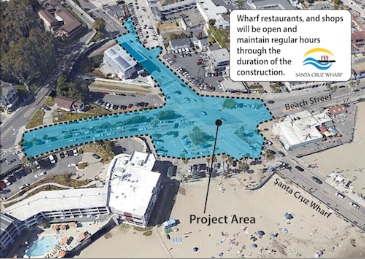 The City of Santa Cruz Public Works Department has contracted with Granite Rock Company to construct the Wharf Intersection Roundabout at the Beach Street and Pacific Avenue intersection at the entrance to the Santa Cruz Municipal Wharf. Work is scheduled to begin this Thursday, Oct. 9, and is expected to be completed by the end of February 2015 barring adverse weather and unforeseen conditions.The intersection will remain open during construction with minimal traffic delays. Wharf and beach restaurants and shops will also stay open with regular hours for the duration of the project.
