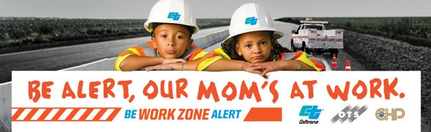The new “Be Work Zone Alert” campaign features public service announcements and nearly 60 billboards across California where the children of highway workers remind drivers to stay alert in California work zones. The campaign is funded with highway maintenance funds and a grant from the California Office of Traffic Safety through the National Highway Traffic Safety Administration.