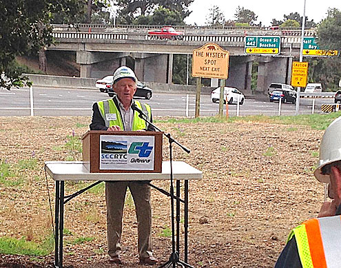 SANTA CRUZ — Regional Transportation Commissioner Chair Don Lane welcomed Caltrans, contractors and the media gathered in the small patch of land encircled by the infamous northbound Highway 1 “Fish Hook” to celebrate completion of a relatively low-cost operational improvement project.