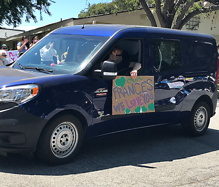 Residents and staff created signs as did the excited family members who awaited the drive with anticipation. The Capitola Police Department helped with the planning by blocking off streets and holding traffic so we could drive through without interruption.