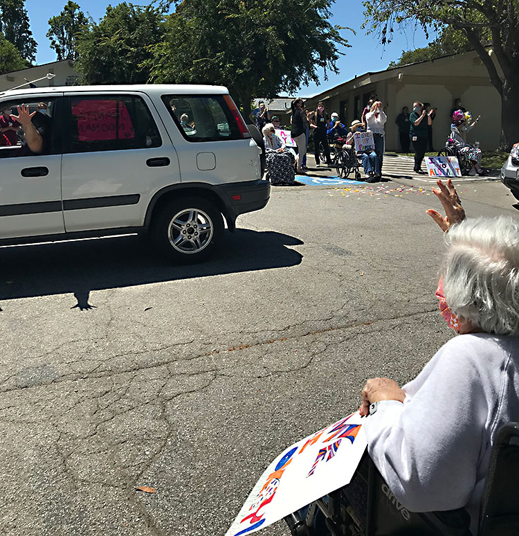 Editor’s Note: When the March 16 shelter-in-place order was issued to slow the spread of the contagious coronavirus COVID-19, visitors were prohibited at the county’s seven skilled nursing facilities. On May 18, after a drive-by salute to the nurses and the staff at Pacific Coast Manor in Capitola, the staff worked with Capitola Police Lt. Leo Moreno to make a drive-by celebration possible for patients so they could once again see their loved ones.