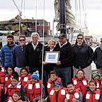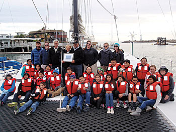 O’Neill Sea Odyssey (OSO) served its 75,000th student during its afternoon class on Tuesday, December 3. A certificate was presented to teacher Stan Wyman and his 6th grade class from Bolsa Knolls School in Salinas after they boarded the Team O’Neill catamaran.