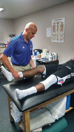 The ultrasound machine at Precision Sports Medicine is located bedside and is used as an integral tool both for diagnosis and as a guide for orthobiologic therapies. “Using ultrasound when giving injections allows me to focus the therapy directly where needed,” he explains. He also points out that while an MRI shows a clear picture through a joint, “With ultrasound, we can take the patient through a full range of motion to see how muscles, tendons, and ligaments are functioning.”