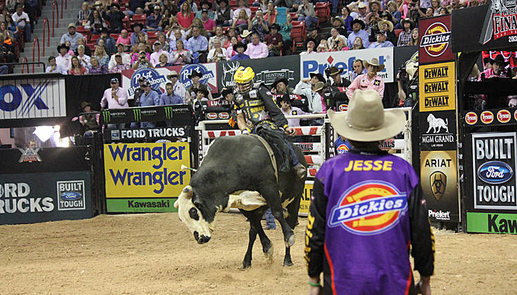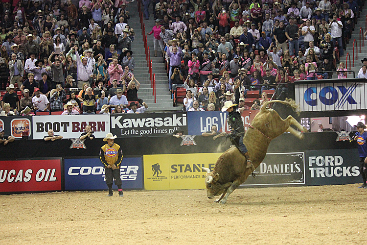 After a tough fought round 2 the first rider of round 3 was Stormy Wing who conquered 4C’s and Sills bucking bull Nitro Carrilo Cartel for not only the first ride of the round but the only rider to score a 90 point plus ride of the night and he goes on to win the round. Closely behind Stormy is Silvano Alves the #2 ranking in the world rides Show Boat for a 89.50 bringing his third round total to 252.75 for a second in the round and bringing himself back to the number 1 overall spot in the world. JB Mauney rides JW Hughes Excavation for an 89 bringing him to 271.50. Even though Mauney has more overall points than Silvano; Silvano picked up a higher round score which gave him the extra bonus points allowing him to take the lead from Mauney by 19.75 points going into round 4.