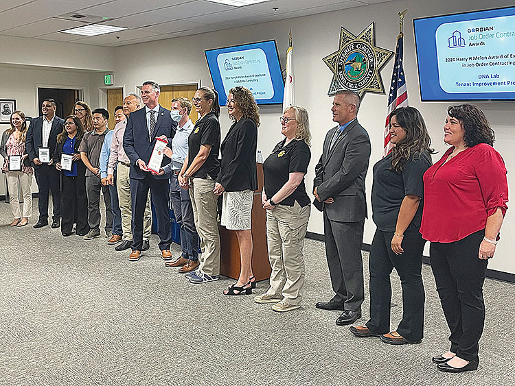 The Santa Cruz County General Services Department and builder Angeles Contractor, Inc. of Industry, CA, were given the 2024 Harry H. Mellon Award of Excellence for Job Order Contracting for the new DNA lab project. The award was presented at a ceremony on Aug. 12 at the Santa Cruz County Sheriff’s Office headquarters on Soquel Avenue.