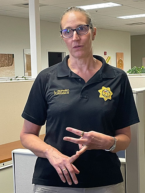 Following the awards ceremony, Dr. Lauren Zephro, the sheriff’s office Forensic Services Director, led a tour of the Forensic Services workspace and new laboratory.
