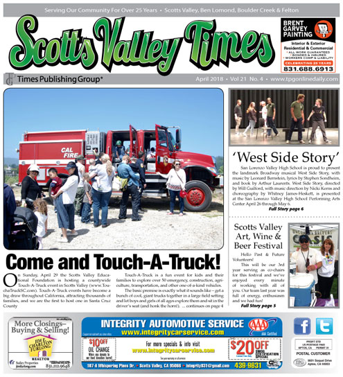 Come and Touch-A-Truck! • Scotts Valley Art, Wine & Beer Festival – Volunteers Needed All Weekend: August 17, 18, & 19 • SLV Theater Presents ‘West Side Story’ • Scotts Valley Update • Jimmie Cox Memorial Scholarship • Thornton Wilder’s classic ‘Our Town’ • Valley High Schools Scoreboard • The One-Page Business Plan: Your Roadmap to Success • All Chamber Mega Business Networking Mixer! • Calendar of Upcoming Events • Artist Applications are Now Open! • Business Tip: Streamline Your Technology Infrastructure for Success • Lacy J. Dalton – Saturday, April 28 • Boys & Girls Club: Joe & Linda Aliberti Clubhouse • Prepare Your Child and Yourself for Camp! • Big O Tires of Santa Cruz, by Edita McQuary … and much more!