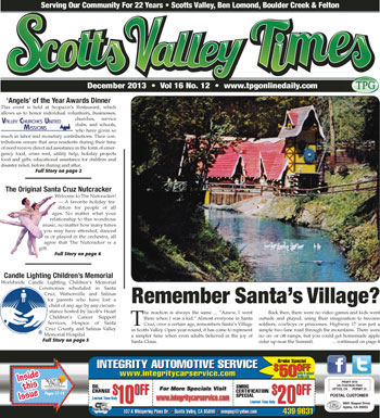 Remember Santa’s Village? • 19th Annual ‘Angels’ of the Year Awards Dinner • Worldwide Candle Lighting Memorial • The Original Santa Cruz Nutcracker • Polo Barn has Million Dollar Price Tag By Noel Smith • Valley High Schools Scoreboard • A Fond Farewell to Our Executive Director By Danny Reber, President, Scotts Valley of Chamber Commerce Board of Directors • 2013’s Christmas Tree Lighting Festival Pulls Out All Stops • Calendar of Upcoming Events • ‘There’s no Place Like Home, No Place Like Scotts Valley’ • A BIG Thank You to Our 2013 Event Sponsors • Loganberry Bakery Ribbon Cutting • TSC Academics Hosts Business Networking Mixer • Welcome to Our New Members • Thank You to Our Renewing Chamber Members • Erik Hanson/Morgan Stanley in Scotts Valley By Jon Chown … and much more!