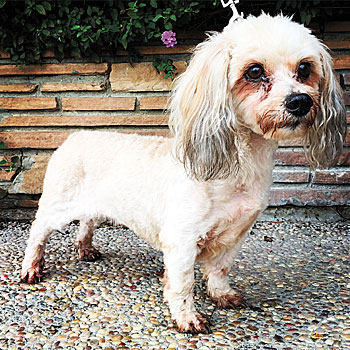 Sammy is about 12 pounds and easy to pick up and move from here to there. He can jump up onto a chair or couch and maneuvers stairs with ease. Because of his breed mix, he does not shed but will require regular grooming. His heart condition does not require any medication but should be monitored by a vet during routine exams.