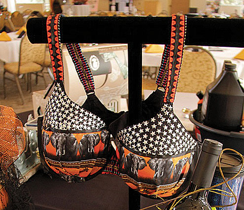 “I liked the safari theme of the colorful orange and black bra with silver stars, which was also the theme for this year’s Bras for a Cause,” said Live Oak resident Beving. “I’ve been on safaris in Kenya and Tanzania and dearly love elephants and giraffes, which the bra depicts.”