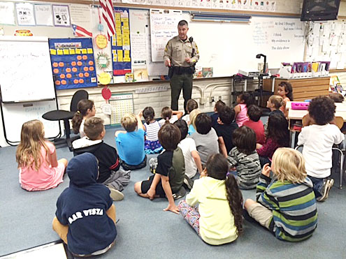 The Sheriff’s Office has embarked on this pilot program with Valencia, Rio Del Mar, Mar Vista and Twin Lakes Elementary Schools. Uniformed Sheriff’s Office personnel and Sheriff’s Office Volunteers visit each of these schools 2nd grade classrooms four times throughout the school year to provide safety education to the children.