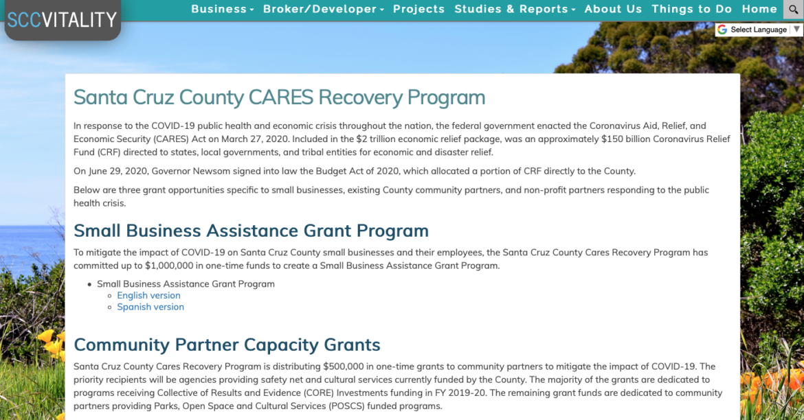 To mitigate the impact of COVID-19 on Santa Cruz County small businesses and employees, the Santa Cruz County Cares Recovery Program has committed up to $15,000 per eligible small business in one-time funds, up to a total of $1 million for the program.