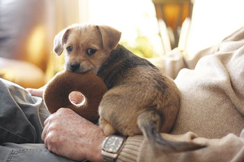 People suffering from specific diseases can benefit from animal companionship as well. Most everyone is aware of the benefits a seeing-eye dog can have for a blind person. This guide dog can promote independence in a person with a visual disability. A person with Parkinson’s disease is aided by a therapy dog who is trained to assist with balance and support, pick up dropped items, and turn lights on or off in a room. Not all conditions require a trained therapy dog; there are benefits from simple dog ownership. For example, women suffering from osteoporosis can benefit greatly from a canine companion. The daily walk encouraged by a dog helps these women perform weight-bearing exercise that strengthens bones and muscle. Additionally, walking outdoors will expose women to sunlight, which can increase vitamin D levels in their bodies.