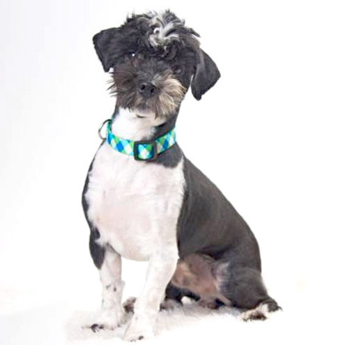 Cayman is a neutered male, black and white Lhasa Apso mix, approx. 3 years old.