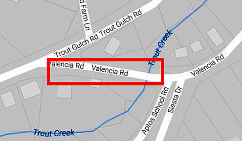 The Department of Public Works announced the closing of Valencia Road between Trout Gulch Road and Aptos School Road for at least two weeks due to an unstable culvert and uncertain road conditions. An alternate route using Freedom Boulevard has been established (see attached map) to provide access to residents and students at Valencia School, which will remain open. Parents of students are urged to carpool and allow extra time for drop-off and pick up during school hours.