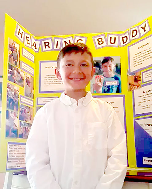 Mateo Torres, a 10-year-old student from Watsonville, CA won the Smart Audio, Cool Cars Award, presented by HARMAN, for his invention “Hearing Buddy” at the National Invention Convention and Entrepreneurship Expo (NICEE). Torres was among 437 student inventors from twenty states and two countries.