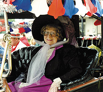 In 1961, Lucille Aldrich, along with Anne Isaacs, Babe Toney, and others, formed the Aptos Ladies Tuesday Evening Society. They organized to defeat a proposed zoning change that would have allowed a cement batching plant to be built in the center of Aptos Village. Their efforts were successful. A celebratory barbecue was held on Memorial Day. The event was so popular that a parade and potluck were planned to follow on the fourth of July. Everyone turned out in old-fashioned clothing and the Monterey Bay Antique Car Club brought 18 vintage cars. A number of visitors stopped to view the parade when the “Sun Tan Special”, the train that once transported visitors from the San Francisco peninsula to Santa Cruz, passed through Aptos Village. “It was a happy coincidence that the parade coincided with the train passing through”, recalled Lucile Aldrich.